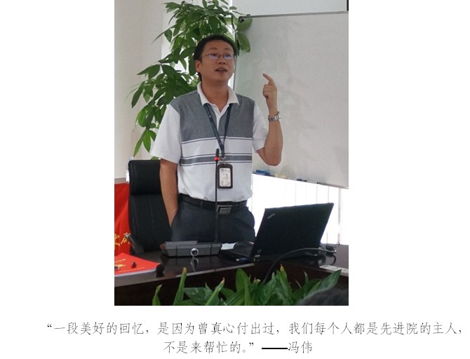 8月日下午,先进院管理二支部邀请科研处马炘处长及人教处冯伟处长为全体党员、员工开展一场别开生面的演讲。两位处长从个人成长轨迹出发,结合先进院的发展历程,利用实例分享了这些年来的得失与变化。从不同角度叙述了如何与先进院结缘,如何从科研岗位走向了管理,在其中遇到困难时如何抉择,为坚定信念与先进院并肩作战,笃定坚守这份事业值得奋斗终身。他们的报告带给党员、员工在工作、生活和个人成长以深刻的启发。