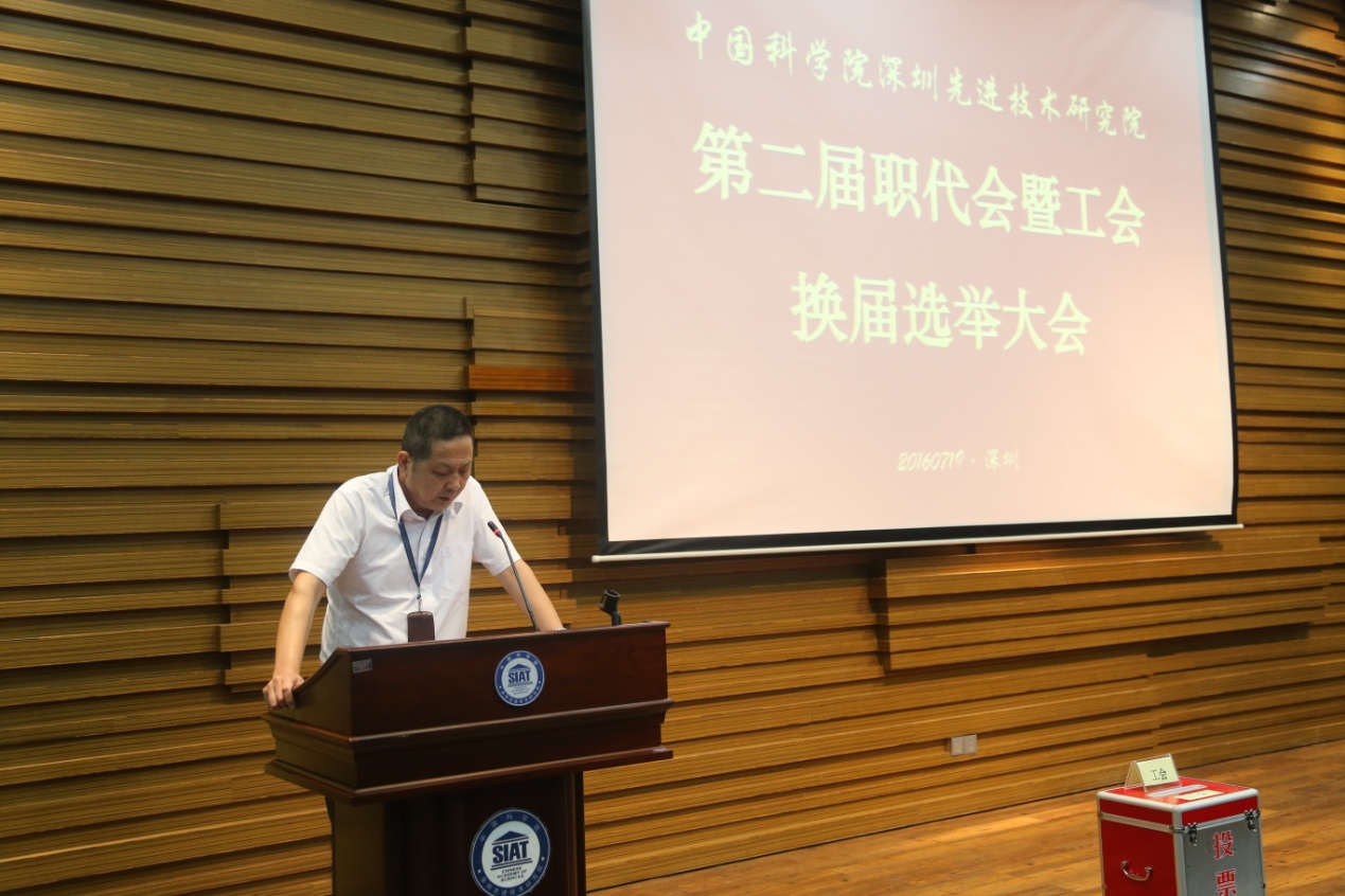 7月19日,中国科学院深圳先进技术研究院召开第二届职代会暨工会换届选举大会,先进院职代会代表、工会会员代表参加了会议,会议由职代会常务副主席、工会常务副主席许建国同志主持。