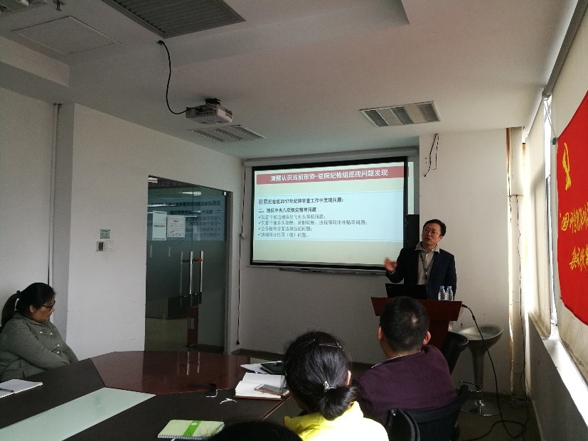 报告中,冯伟同志通过分析驻院纪检监察组参与巡视发现的问题,深刻剖析了从事科研工作的党员群体在新形势下应当如何规范自己的行为,不触碰纪律和法律的红线。特别在与支部党员密切相关的科研经费使用、固定资产管理等问题高发领域,他站在科研人员的角度解析真实案例,详细讲解了明确的操作依据和判断标准,加深了大家对纪律规矩的认识,增强了大家自觉遵守纪律的意识,也给全体支部党员敲响了警钟。