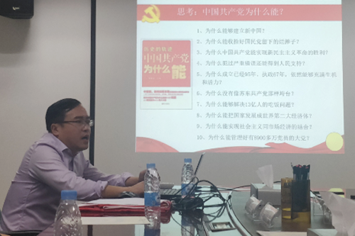 唐永炳同志从思考为什么要学习党史国史出发,强调了共产党人的初心和使命。紧接着,唐永炳同志回顾了中国共产党的奋斗历程,分别从新民主主义革命时期、社会主义革命和建设时期、改革开放和现代化建设新时期,详细介绍了中国共产党建党、建国和发展详细历史,突出了中国共产党的三大“伟大历史贡献”,并要求各位党员同志正确处理“不变”与变“变”的辩证关系,不变的是信仰、信念、纪律和担当,变化的是形势、任务、政策和挑战,号召大家增强党性、勤奋学习、以人民为中心,“不忘初心,牢记使命”做一名合格党员。