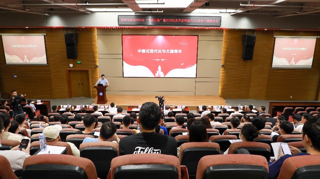 为庆祝中国共青团成立101周年,在深圳市政协的指导下,5月6日早上,中科院深圳先进院团委成功举办了深圳市政协2023年“委员讲堂”暨SIAT庆祝中国共青团成立101周年主题报告会。深圳市政协、市信访局、团市委、先进院相关部门领导、团员青年代表等200人参加了报告会,报告会同时在读特、壹深圳、新浪、移动等相关新媒体进行线上直播。报告会由先进院团委副书记秦文健主持。