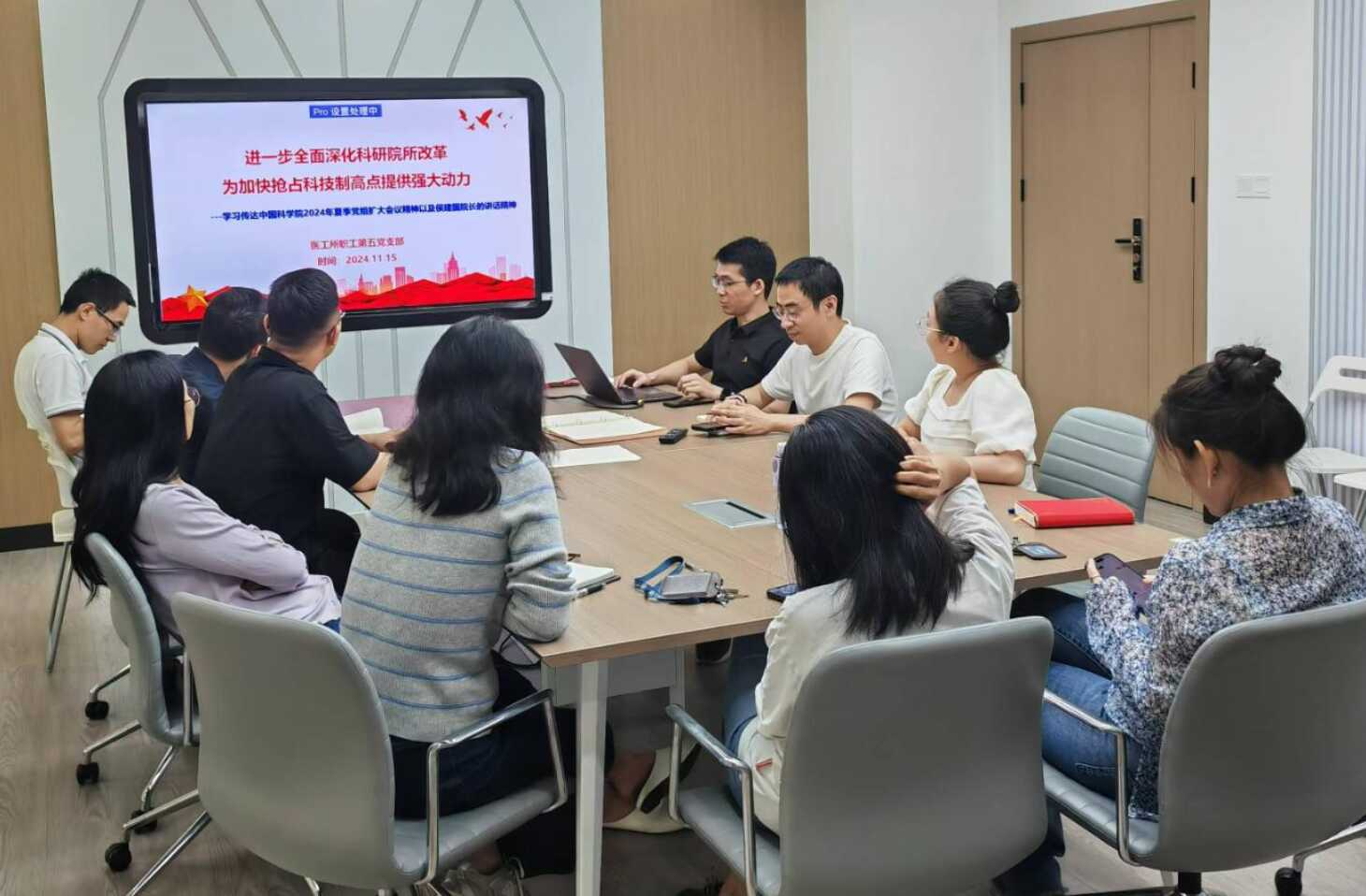医工所职工第五党支部于2024年11月15日组织开展主题党日,深入学习中国科学院2024年夏季党组扩大会议精神。