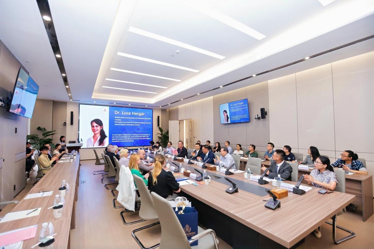 座谈会上,Éva Kondorosi院士分享了欧洲科学院在国际上开展科学交流所建立的渠道与体系,表示希望与深圳先进院在相关领域开展更深层次合作;ANDRÁS VARRÓ院士介绍了匈牙利国家科学教育学院的情况,表示希望进一步加强欧亚学生间的交流与合作;GÁBOR VARGA教授阐述了塞梅维什大学转化医学中心的策略,希望推动双方研究成果转化及成功落地可能性;欧洲科学院院士、深圳先进院医工所转化医学中心主任秦岭教授详细介绍了欧亚卓越转化医学中心(TEA-NET)情况,提出中心探索建设集“产业-创新-研究-应用”于一体的国际转化平台方案,此方案的核心目标是推动产学研用的全面深度融合,以此加快医学创新成果的转化速度,并促进转化医学领域的人才交流。这一创新性的平台方案,对于推动医疗健康产业的全面升级具有举足轻重的意义;医药所所长蔡林涛重点分享了深港科研合作的成功案例,希望拓展双方合作新方式,携手开创欧亚合作共赢新局面。