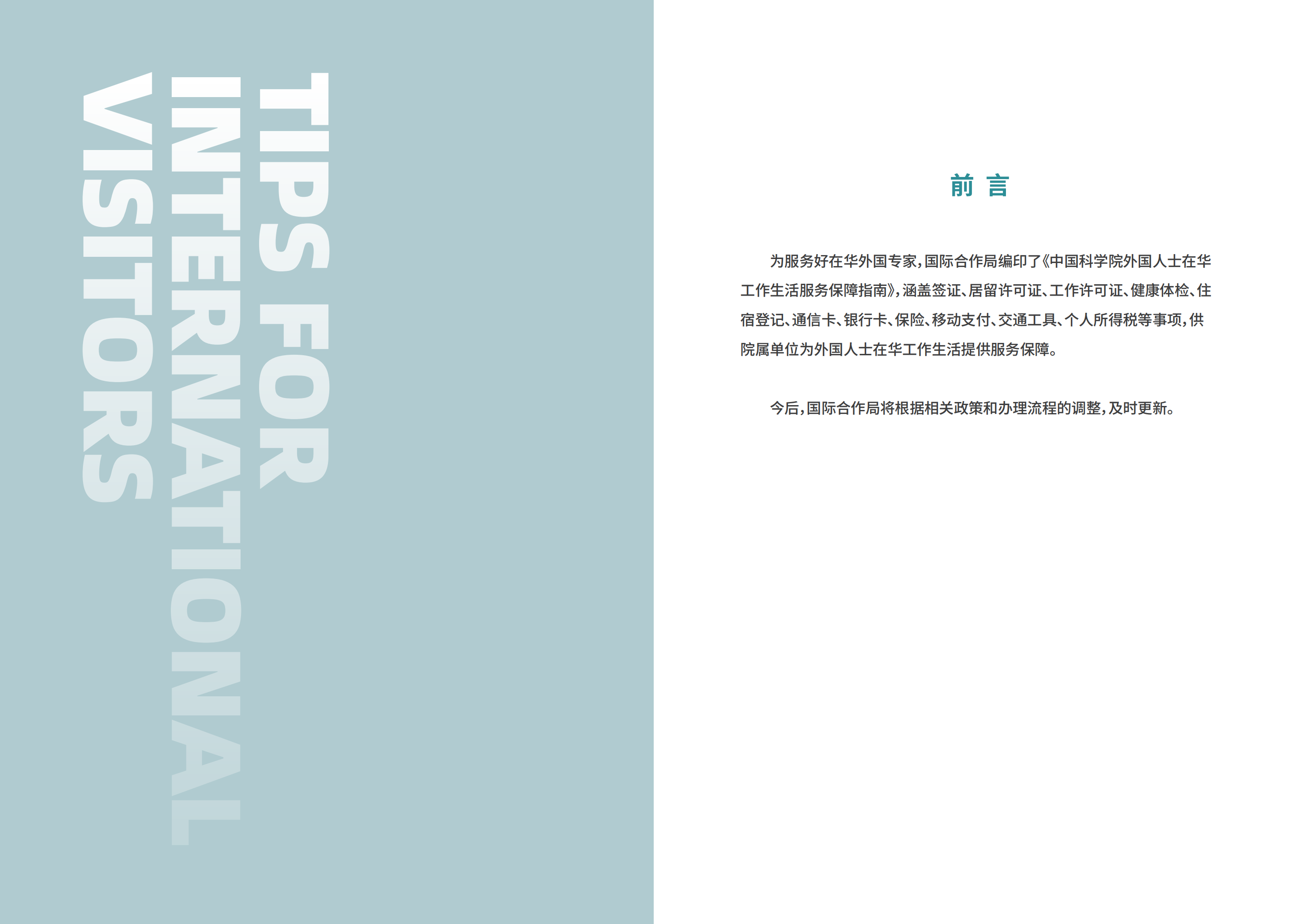 【生活】中国科学院外国人士在华工作生活服务保障指南 CAS Tips For International Visitors