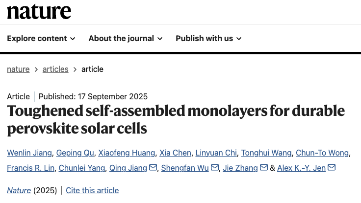 Nature再+1!深圳先进院联合开发新型SAM分子策略 解决反式钙钛矿太阳能电池稳定性难题