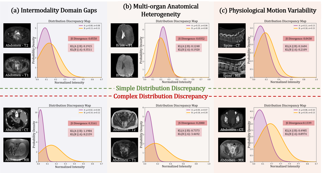 图2:多模态医学图像配准的复杂分布差异问题