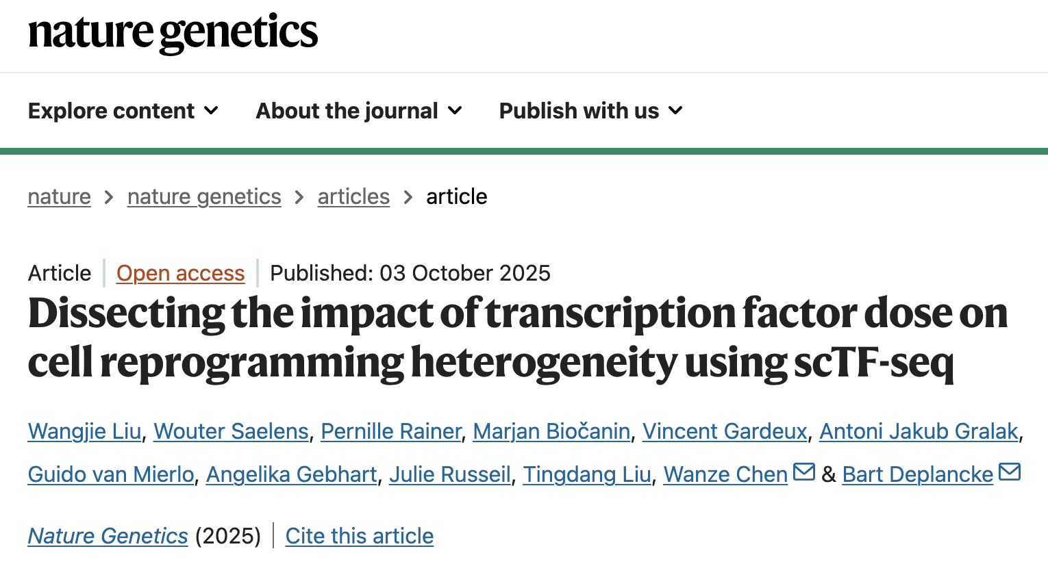 文章上线截图,原文链接:https://www.nature.com/articles/s41588-025-02343-7