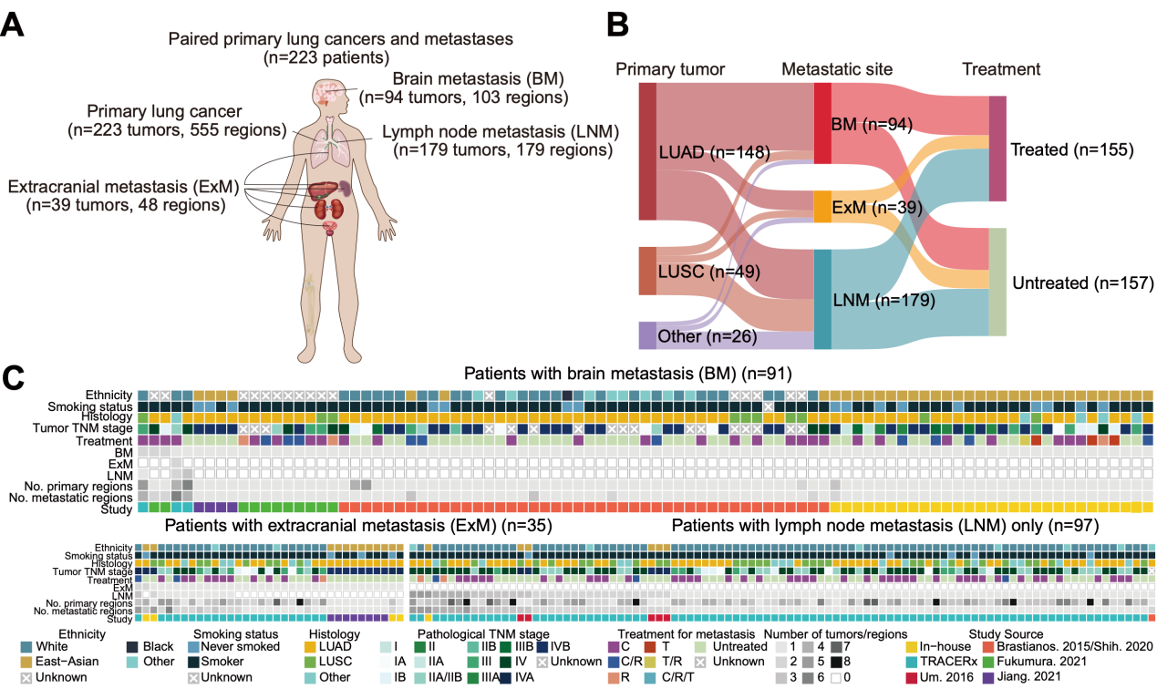 图1. 223例转移性非小细胞肺癌的原发-转移配对基因组数据集