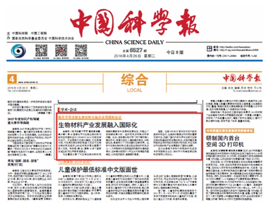 《中国科学报》:骨关节可注射生物材料与临床应用国际会议召开