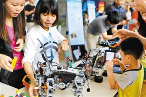 昨日,市民走进先进院的实验室探究机器人控制原理。 深圳商报记者 王海荣 摄