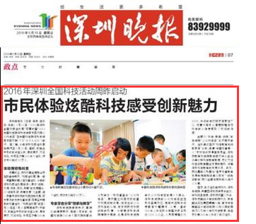 《深圳晚报》:2016年深圳全国科技活动周昨启动市民体验炫酷科技感受创新魅力