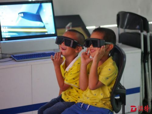 在2015年中国科学院深圳先进技术研究院公众科学日上,小朋友们在可视计算实验室里进行体验。