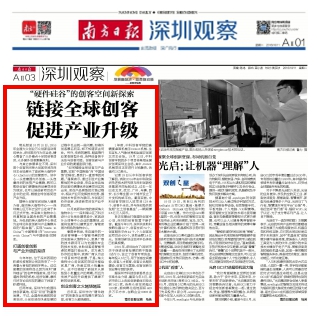 《南方日报》:“硬件硅谷”的创客空间新探索链接全球创客促进产业升级