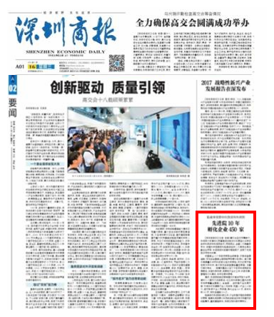 《深圳商报》:路甬祥视察中科院深圳先进院先进院10年 孵化企业450家