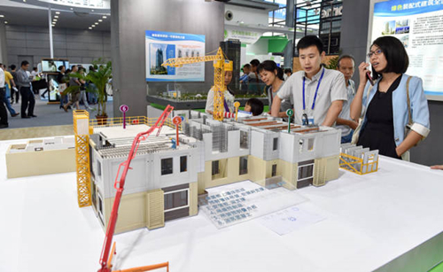 11月19日,中建钢构的工作人员向观众介绍绿色装配式建筑。新华社记者 毛思倩 摄