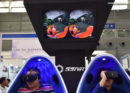 Audience experience a visual reality (VR) game at the China Hi-Tech Fair in Shenzhen, south China's Guangdong Province, Nov. 17, 2016. (Xinhua/Mao Siqian)