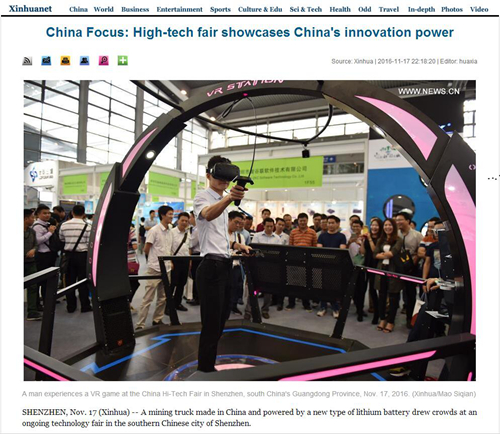 Xinhuanet:China Focus: High-tech fair showcases China's innovation power
