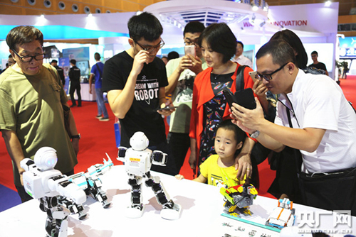 中科院参展的机器人项目男女老少都喜欢(央广网记者 黄光辉 摄)