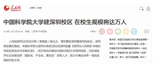 人民网:中国科学院大学建深圳校区 在校生规模将达万人