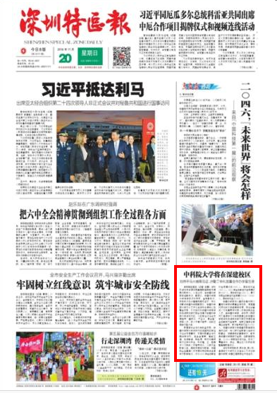 《深圳特区报》:中科院大学将在深建校区 刘伟平马兴瑞等见证 许勤丁仲礼签署合作办学备忘录