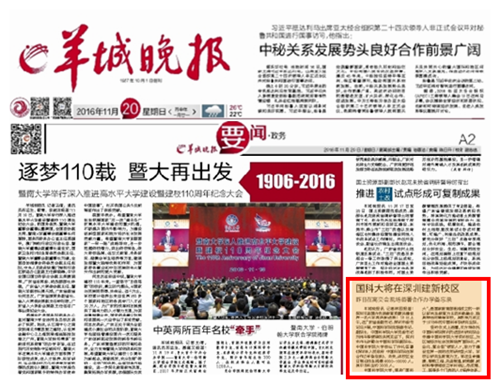 《羊城晚报》:国科大将在深圳建新校区昨日在高交会现场签署合作办学备忘录