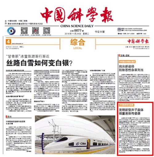 《中国科学报》:中科院深圳先进院发明新型声子晶体微量液体传感器