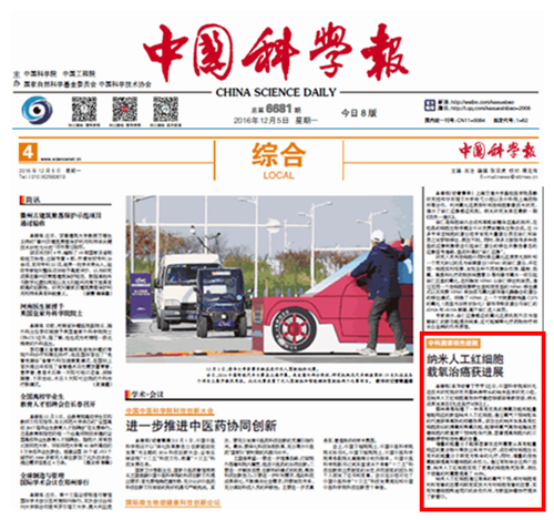 《中国科学报》:中科院深圳先进院纳米人工红细胞载氧治癌获进展