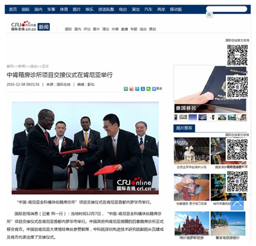 国际在线网:中肯箱房诊所项目交接仪式在肯尼亚举行