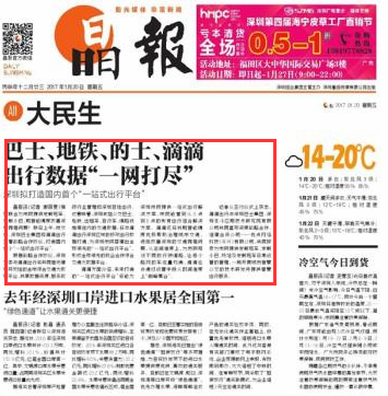 《晶报》:巴士、地铁、的士、滴滴出行数据“一网打尽”