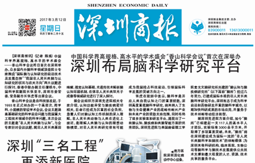 《深圳商报》:中国科学界高规格、高水平的学术盛会“香山科学会议”首次在深举办深圳布局脑科学研究平台