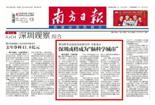 《南方日报》:香山科学会议首次在深召开,专家表示深圳或将成为“脑科学城市”