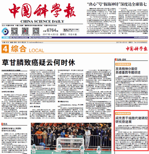 《中国科学报》:间充质干细胞代谢调控研究获进展