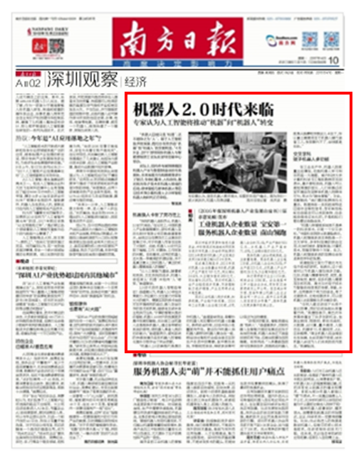 《南方日报》:机器人2.0时代来临专家认为人工智能将推动“机器”向“机器人”转变
