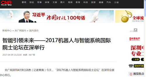 央广网:智能引领未来——2017机器人与智能系统国际院士论坛在深举行