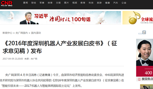 央广网:《2016年度深圳机器人产业发展白皮书》