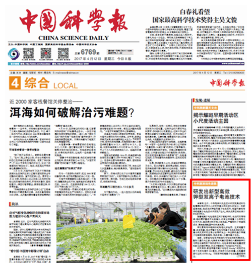 《中国科学报》:中科院深圳先进院研发出新型高效钾型双离子电池技术