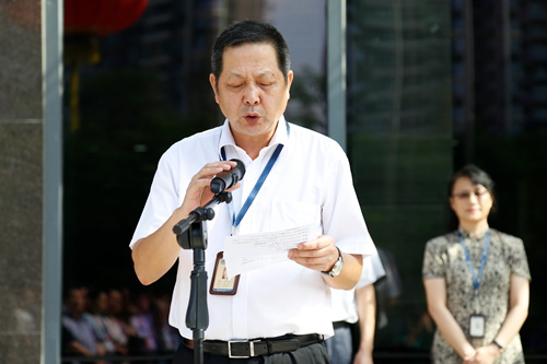 为深入进行爱国主义教育,纪念抗日战争暨世界反法西斯战争胜利70周年,纪念烈士纪念日,进一步增强广大员工、学生的民族自豪感,在中华人民共和国66周年华诞之际,9月25日上午,中国科学院深圳先进院在园区内举行了升旗仪式。仪式由副院长许建国主持。