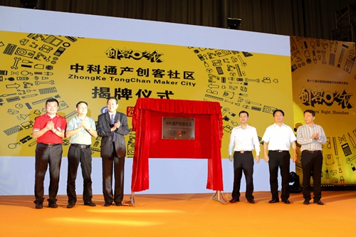 16日晚,在第十七届高交会“创客之夜”大型项目路演会上,隆重举行中科通产创客社区揭牌仪式。中科通产创客社区由中科创客学院与通产集团双方牵头,发挥了中科创客学院科技平台、创客创业人才培养扶持优势和通产集团的园区、资本、产业化资源等优势,为创客提供更专业更丰富的社会资源,对于发展到一定阶段的创客项目来说,这是一个延续了创客学院精神和资源的社区平台。创客社区通过资源融合产学研资合作,将建设成为科技创业型企业实现从0到N的新型培育和孵化平台,为创客和初创企业提供完整、优质、线上线下一体化的创新创业生态环境,将力促“创客社区”企业成为区域经济提速提质发展的新引擎,为“大众创业、万众创新”增添一股新力量。