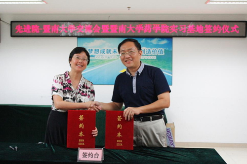7月20日,中国科学院深圳先进技术研究院生物医药与技术研究所与暨南大学药学院实习基地签约仪式在先进院举行,医药所所长蔡林涛和暨南大学药学院副院长蔡绍晖代表双方签约。这是2014年共建“中科先进班”联合培养学生以来,双方合作的进一步推进。