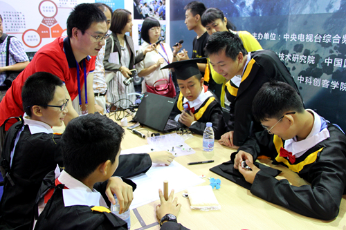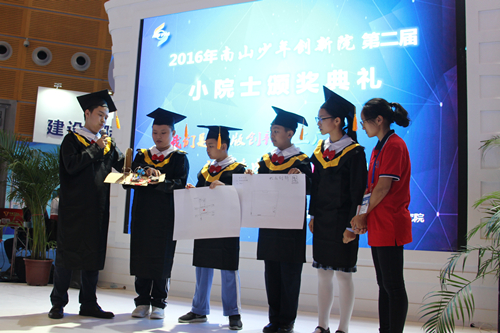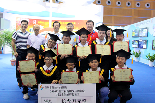 11月18日,阮厚铭、林栩、谢杰羽、陈颖臻、姜廷禹等10名2016年度南山少年创新院小院士亮相高交会5号场馆,他们不仅现场路演展示出深圳少年的创客精神,还正式获颁“第二届南山少年创新院小院士”证书、获得13万“小院士作品孵化基金”。