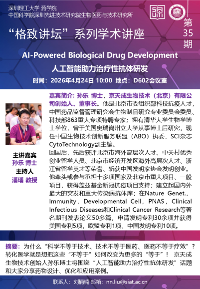 【2026年4月24日 药学院/医药所】人工智能助力治疗性抗体研发