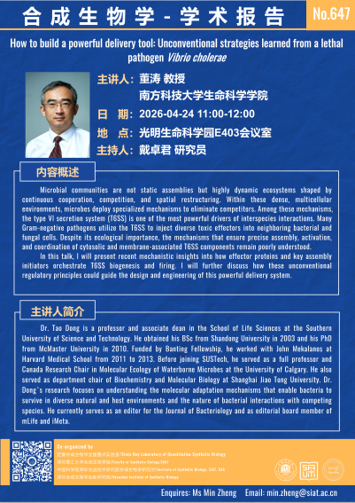 【2026年4月24日 合成所/合成生物学院】How to build a powerful delivery tool: Unconventional strategies learned from a lethal pathogen Vibrio cholerae