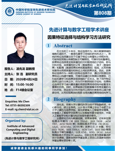 【2026年4月24日 数字所/计算机学院】因果特征选择与结构学习方法研究