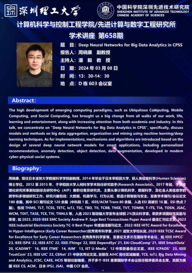 【2024年3月8日 计算机学院/先进计算与数字工程研究所】Deep Neural Networks for Big Data Analytics in CPSS