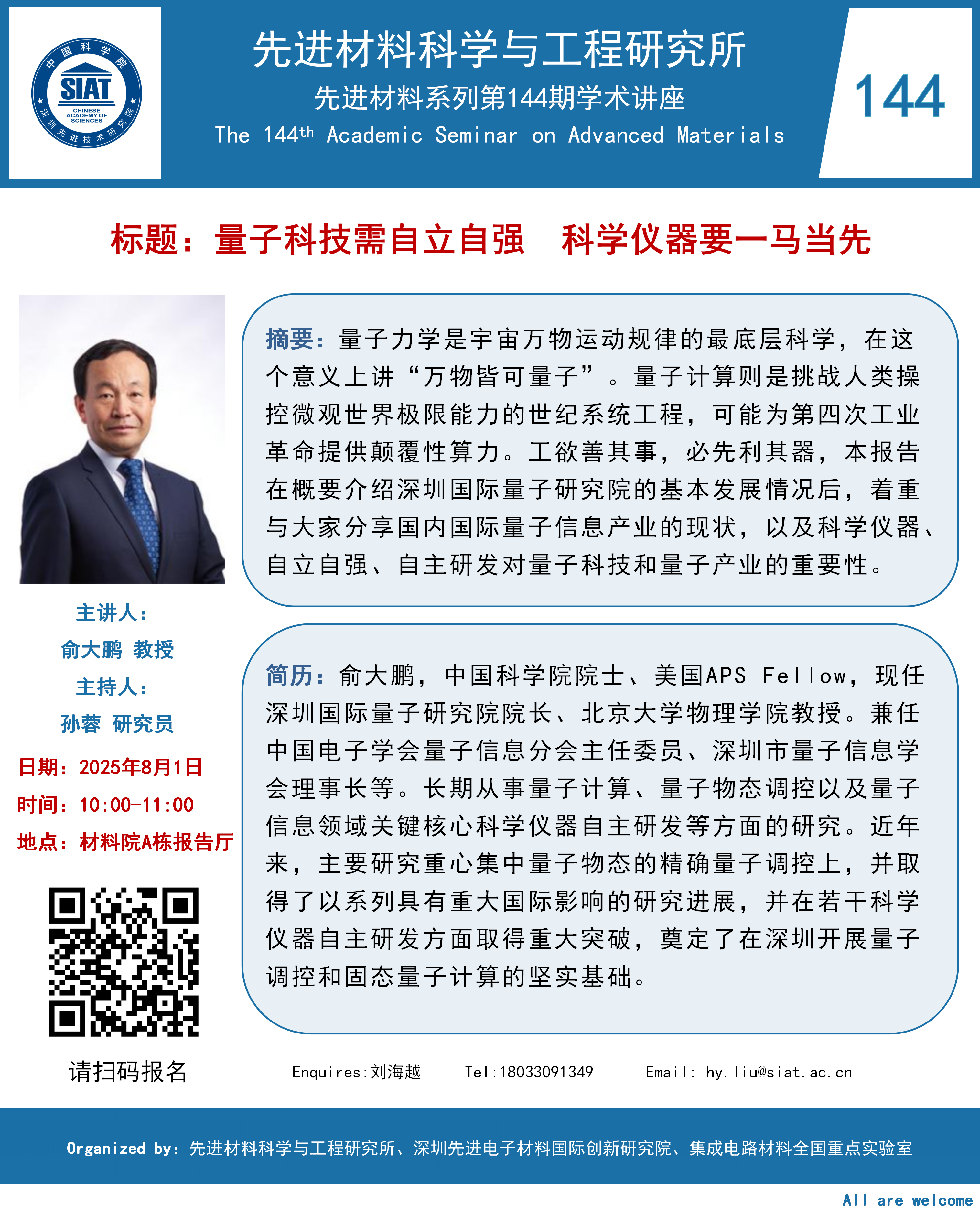 【2025年8月1日 先进材料科学与工程研究所】量子科技需自立自强 科学仪器要一马当先