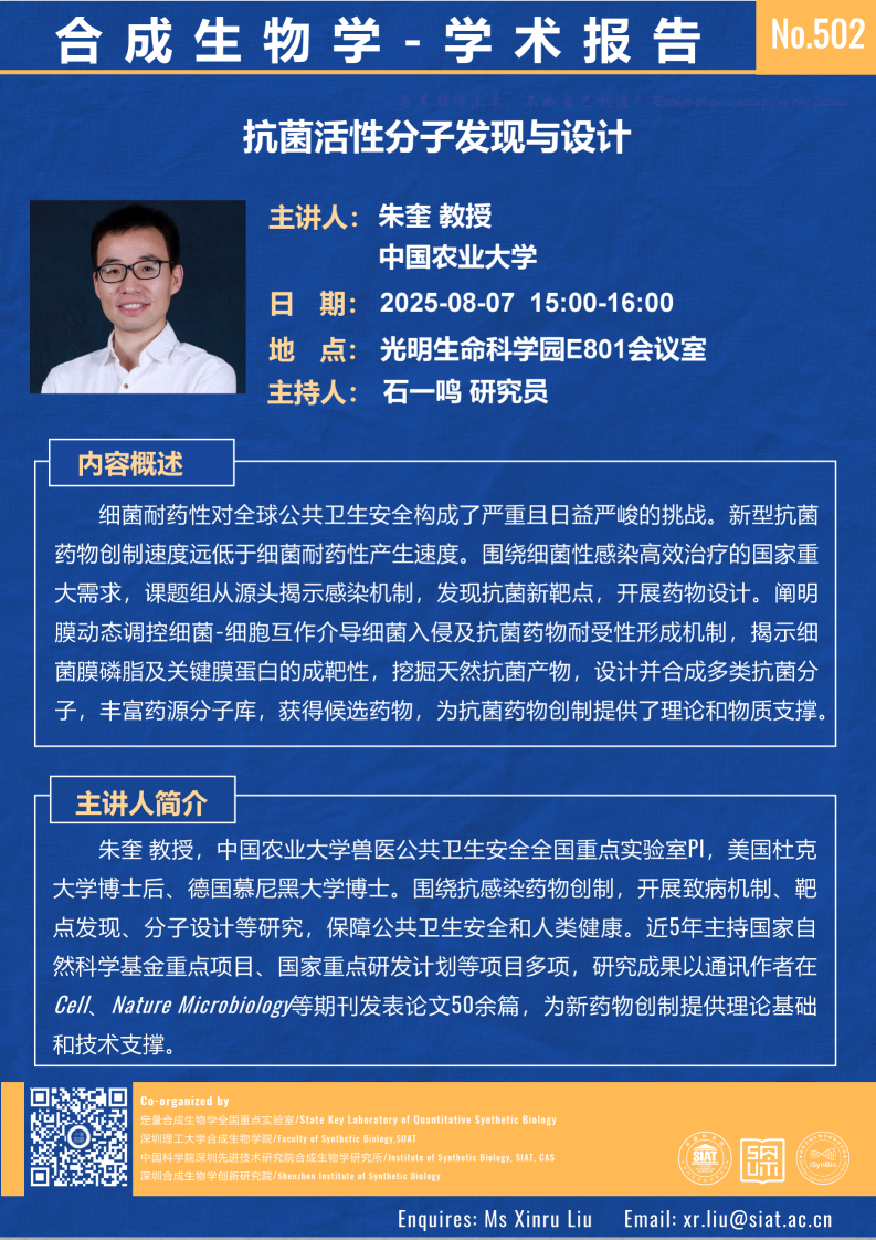 【2025年8月7日 合成所/合成生物学院】抗菌活性分子发现与设计
