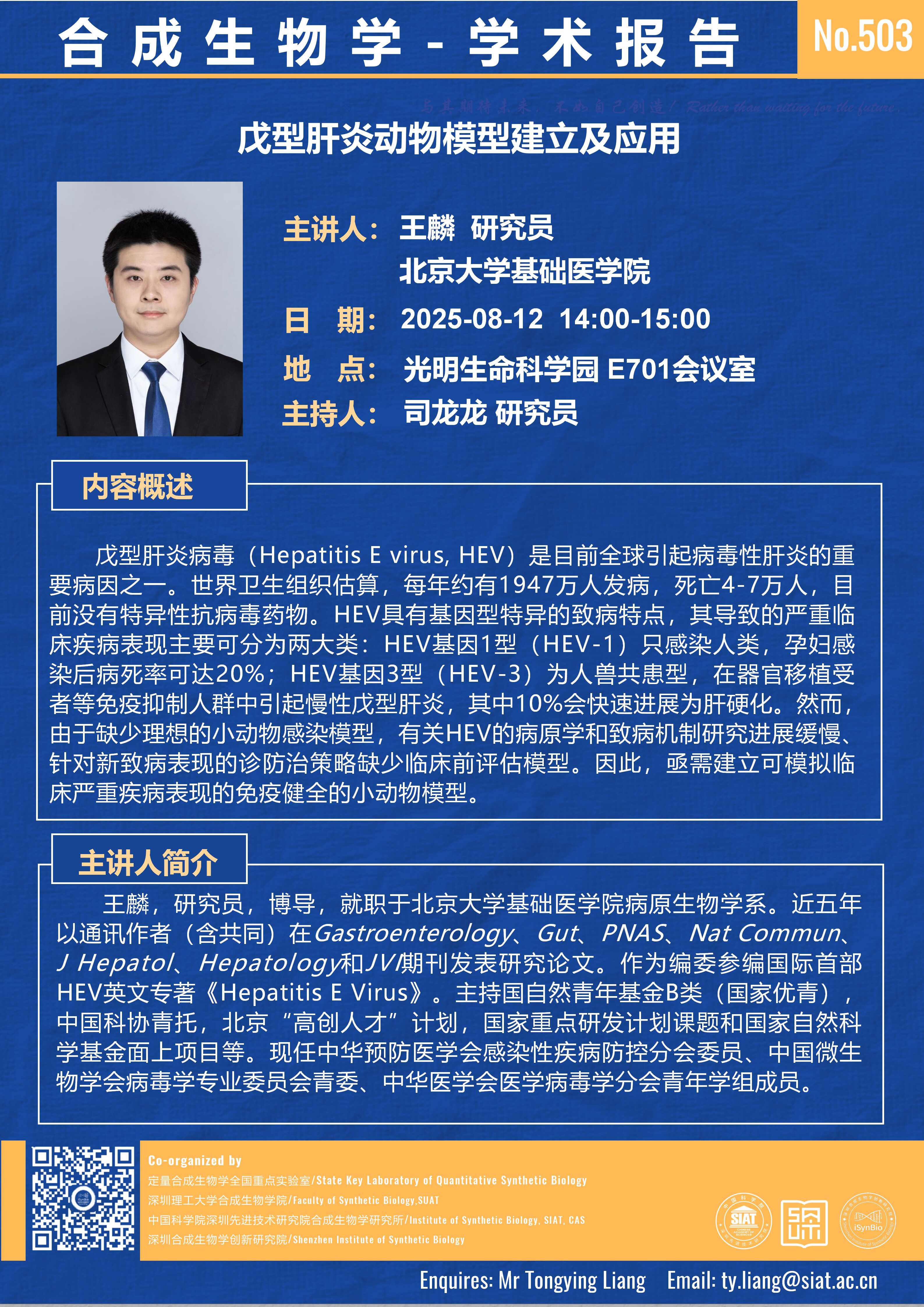【2025年8月12日 合成所/合成生物学院】戊型肝炎动物模型建立及应用