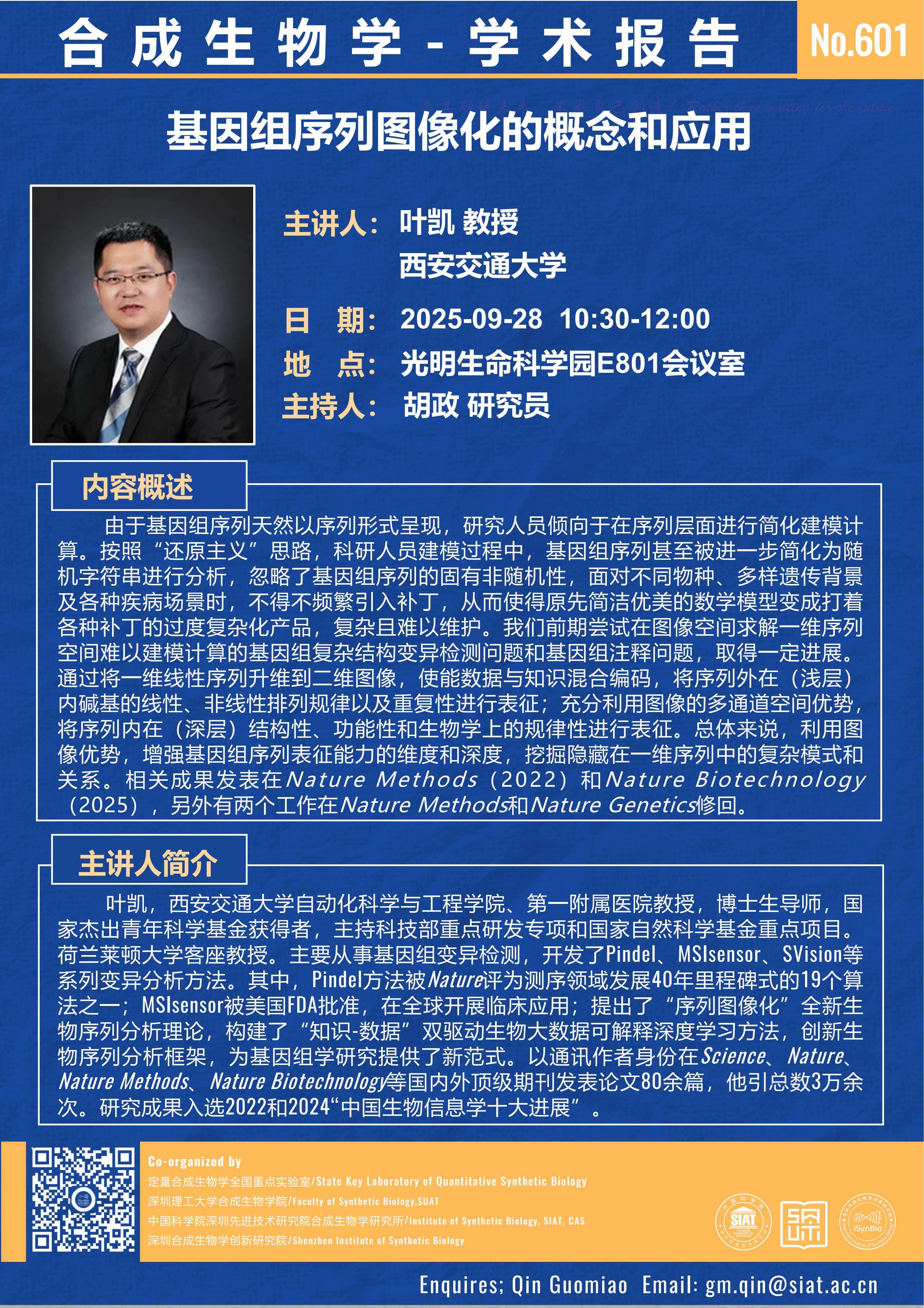 合成所/合成生物学院 第601期 学术讲座将于 9月28日(星期日)10:30-12:00 在 生命科学园E801会议室 举行。