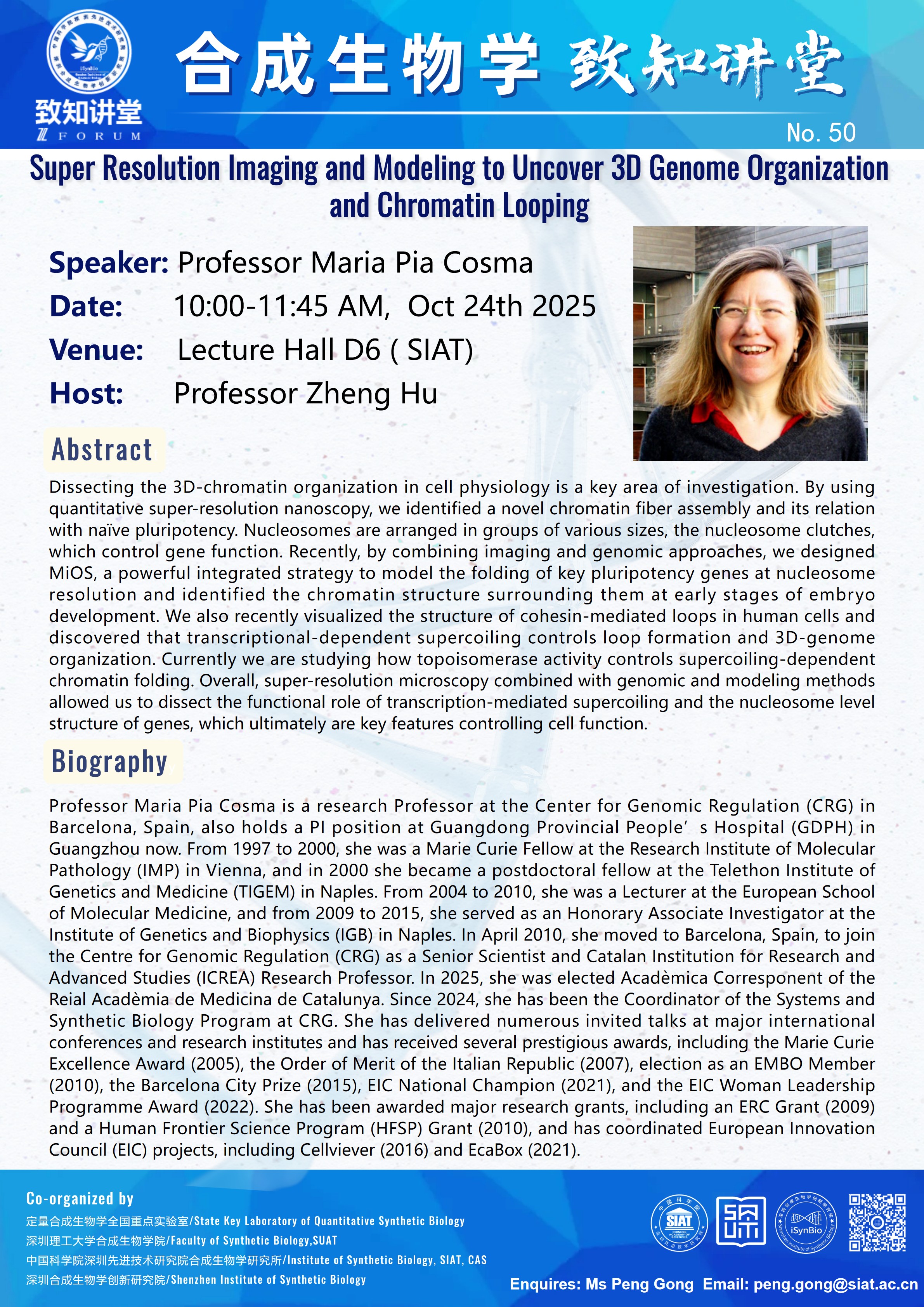 深圳合成生物学创新研究院/合成生物学研究所/合成生物学院“致知讲堂”第五十期 将于 2025年10月24日(星期五)10:00-11:45 在 先进院 D6环形报告厅进行