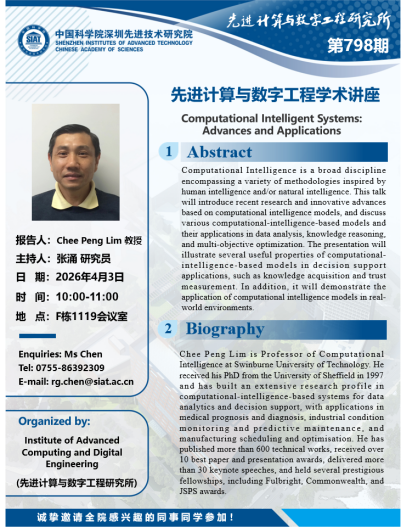 【2026年4月3日 数字所/计算机学院】Computational Intelligent Systems: Advances and Applications